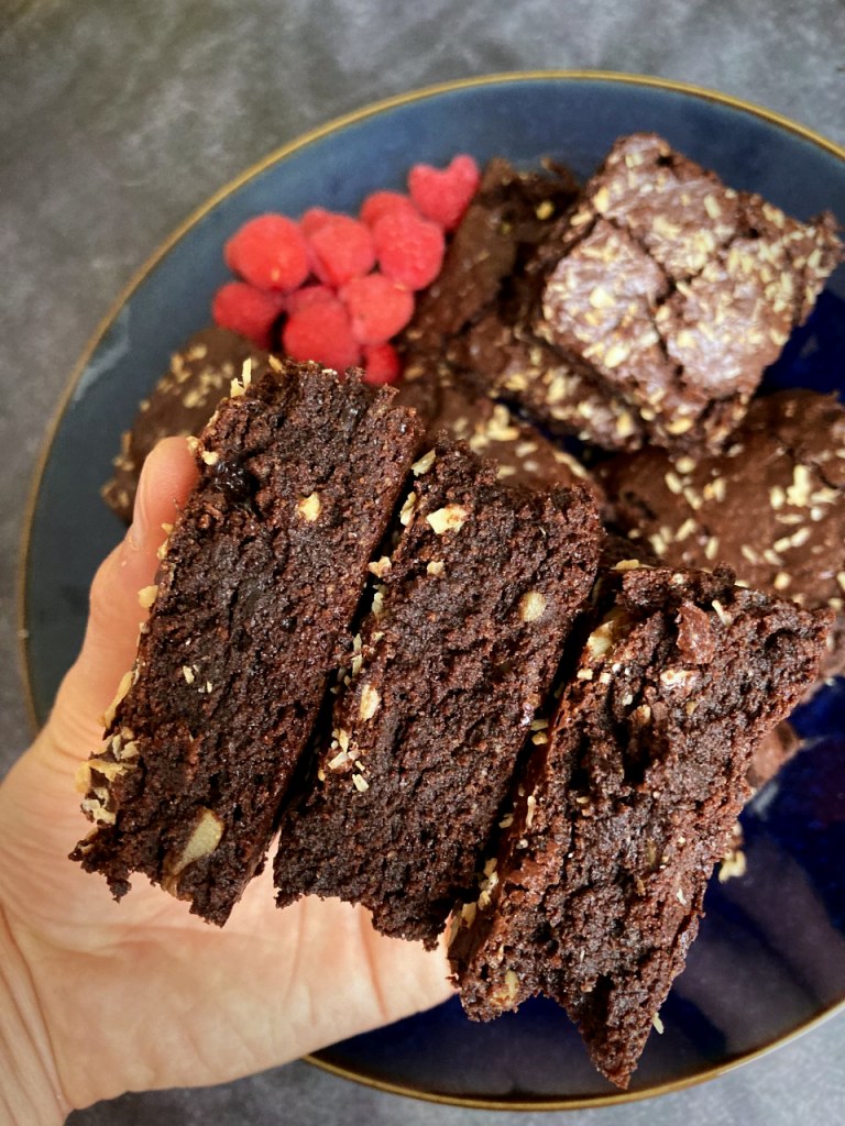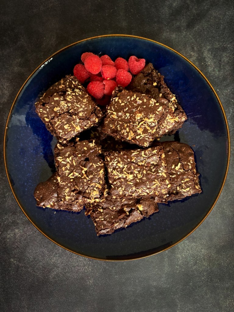 We decided that we were going to make almond flour brownies. We set out to make a dense, moist and chocolatey dessert that would satisfy both of our desires. Instead of using cocoa powder, we thought it would be fun to bake with unsweetened chocolate to bring an extra rich texture to the brownies. We also used coconut sugar instead of regular sugar to bring an extra level of chewiness to the brownies. These brownies are delicious out of the oven, but are even better the next day after being stored overnight in a tupperware. I hope you enjoy these rich brownies!