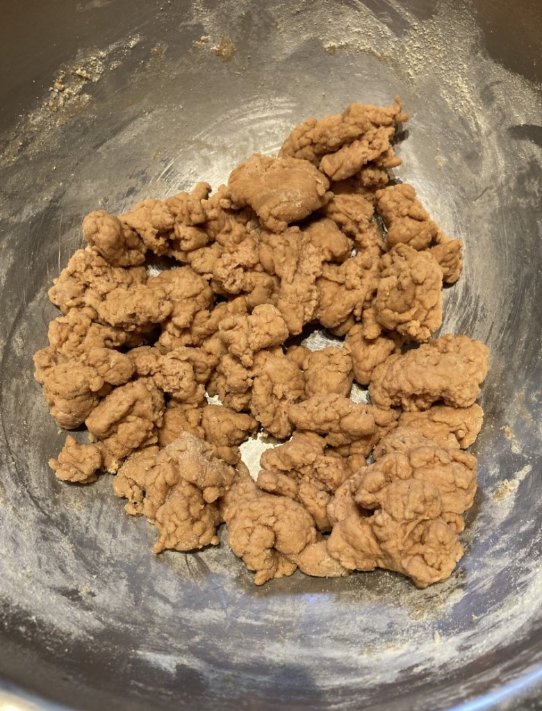 - Heat a cast iron skillet on medium heat. Once hot, add in 1 tbsp of neutral oil and add in the dough. Sauté on each side until nicely browned, about 3 minutes a side. Afterwards, add the soy sauce and water until the dough is mostly submerged. Bring to a boil and simmer for 30 minutes. Once the 30 minutes is up, cut open a piece and check it is cooked all the way through. Strain and set aside.