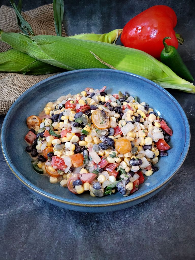 One of the things I learned while working on the farm was how tasty raw sweet corn is when it’s fresh. It’s juicy, sweet, crunchy and super refreshing on a hot summer day. I like to eat an ear raw right at the market when I buy it, and the amount of weird looks I’ve gotten tells me that not enough people have tried corn raw. So, why not make a whole recipe centered on it to demonstrate this delicious and underappreciated way to eat corn.
