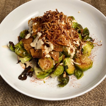 Tahini Brussel Sprouts with Seitan